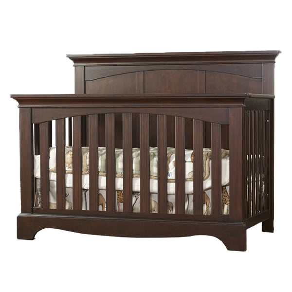 The Torino Convertible Crib combines classic charm with royal details. It is crafted from select sustainable hardwood, tested to meet or exceed all required US safety standards, and is GreenGuard Gold Certified. Its 4-in-1 design means it can easily convert to a toddler bed, daybed, and then to a full size bed.